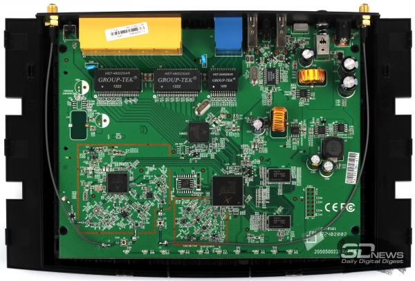 Может быть, оно и к лучшему, так как роутер во время работы нагревается умеренно. Однако из-за немалых размеров корпуса, к которым добавляются ещё и длинные антенны, разумнее будет разместить его всё-таки на стене.