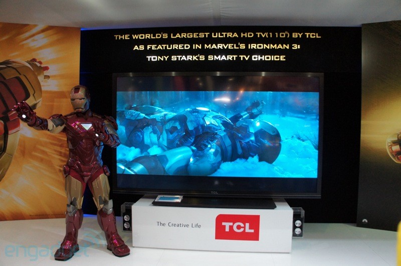 Одним из наиболее примечательных экспонатов стал 110-дюймовый телевизор «China Star» 3D 4K TV, наделённый мультисенсорной ЖК-панелью с разрешением Ultra HD и поддержкой стереоскопического режима. На дисплее с яркостью 800 нит демонстрировался трейлер грядущего фильма Iron Man 3, главный персонаж которого стоял во весь рост перед экраном.