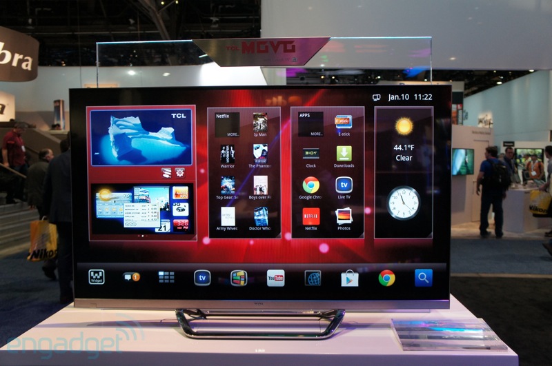 В павильоне TCL также можно было видеть выпущенный в прошлом году мультисенсорный лёгкий 24" телевизор iCE Screen, предоставляющий планшетное окружение, и сверхтонкий 11,5-мм телевизор V101 Blade.