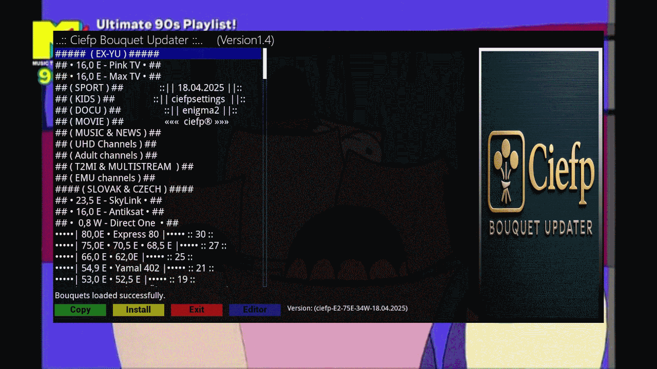 Развиваясь на основе оригинального `CiefpBouquetUpdater`, он предлагает расширенные функции для обновления, организации и редактирования наборов каналов и букетов,